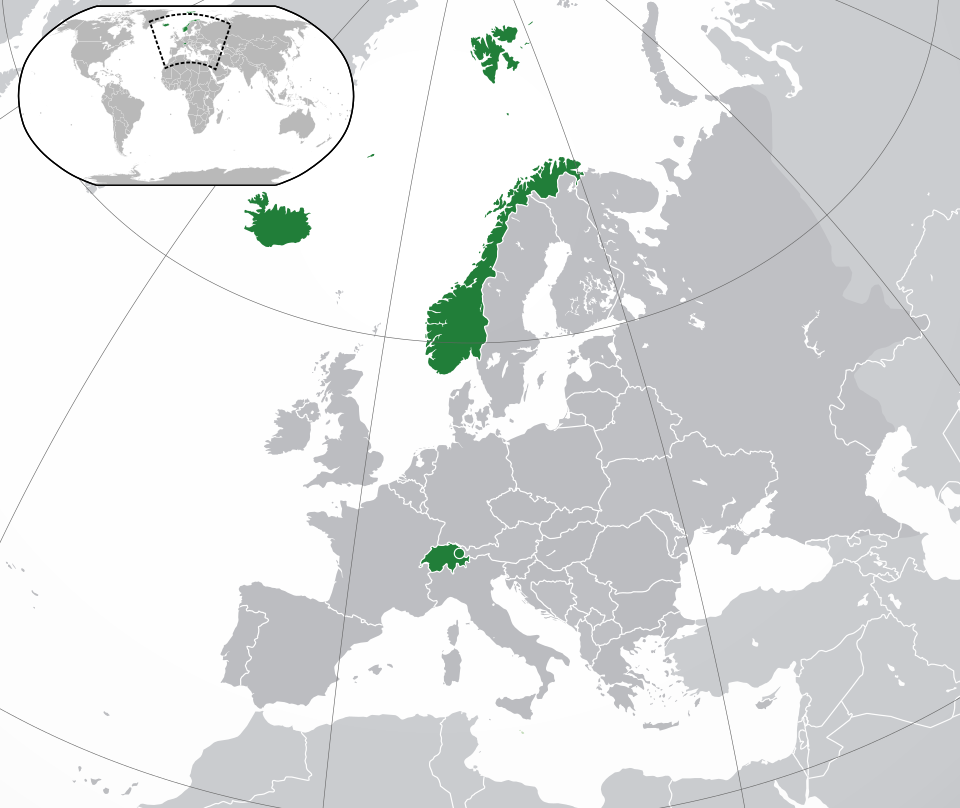 Lichtblauw: Vertegenwoordigd door de Europese Unie